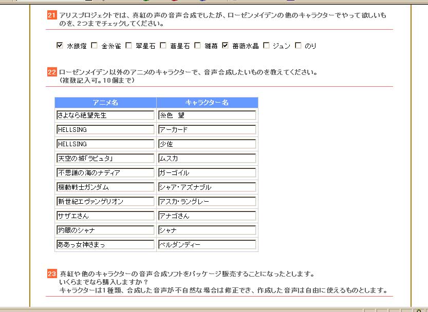 ~アリスプロジェクトのアンケートに答えてみた~
