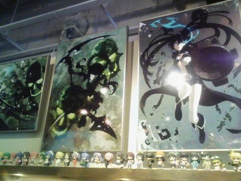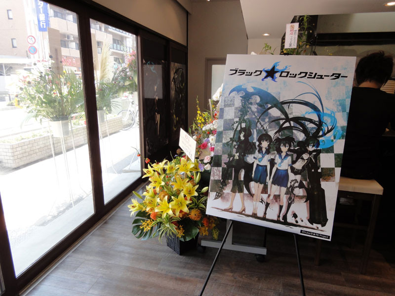 まず入り口から正面方向、店内奥の大型スクリーンでは「ブラックロックシューター」のアニメが流れています。