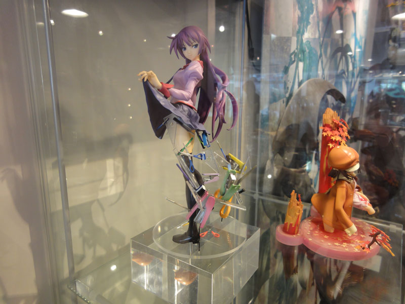 左手にはブラック~のイラストボード(写真1枚目)、カウンター席、ミニ展示スペースには大き目の立体物がガラスケースに(写真2,3,4枚目)