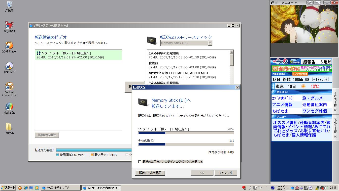 VAIO TTで録画したワンセグ動画をPSPに転送中(もちろん両方で再生可能です)